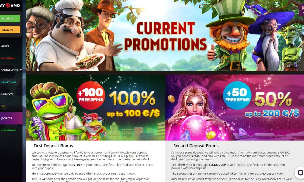 No respectable online casino leaves new customers without welcome bonuses, and PlayAmo also delights beginners with an exciting welcome package. It includes 100% and 50% bonuses on the first two deposits and free spins on slots.