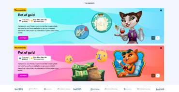 Cat Casino offers free slot tournaments for players daily. They are held on interesting slot machines. The schedule of competitions, the list of machines involved, and the general rules can be found in a special section of the website.