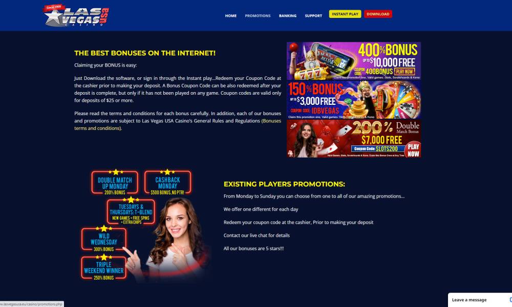 It offers a welcome package to new customers and has numerous promotions for regulars.