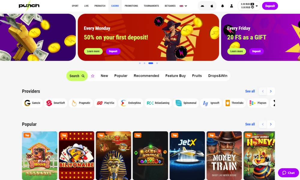 Almost all games at Punch Casino are various types of slot machines. Therefore, everything mentioned above applies directly to slots. Hopefully, the catalog will soon include titles from the most popular software providers in the gambling industry.
