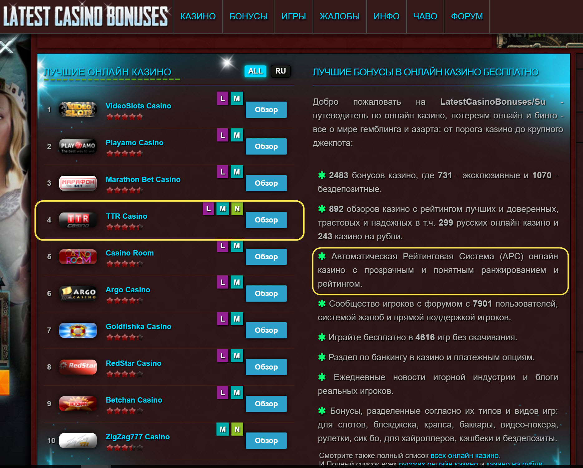 Initially, it was not even present on the homepage in the section Top Casinos. However, then TTR Casino moved to 4th place.