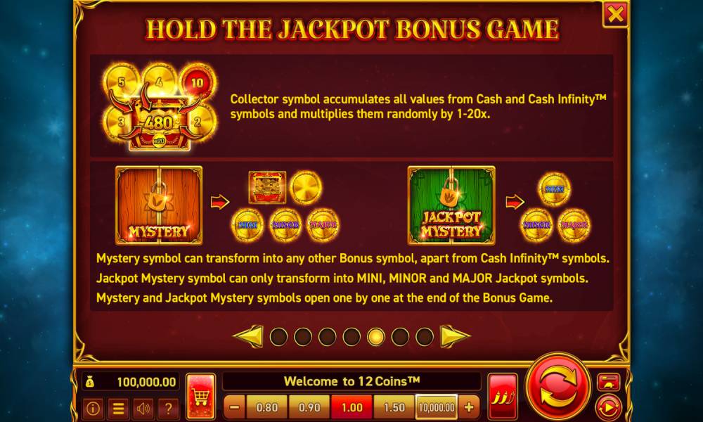 Vidu online slot standards and its simplicity were prescribed rules of gameplay in the slot 12 Coins, I suggest familiarizing yourself with. The game lacks classic paylines, as the focus is on bonus symbols and activation of the bonus game. The playing field has a 4x3 grid, and the bet size varies from 0.2 coins to 10000 coins per spin of the reels.