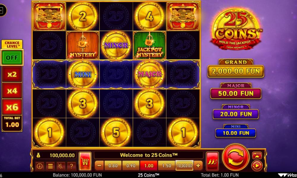 25 Coins is a slot from the British developer Wazdan, released at the end of January 2024. It is part of the interesting and famous Coins series, which appeared in 2022. It has been nominated for 3 CasinoBeat Developer Award.