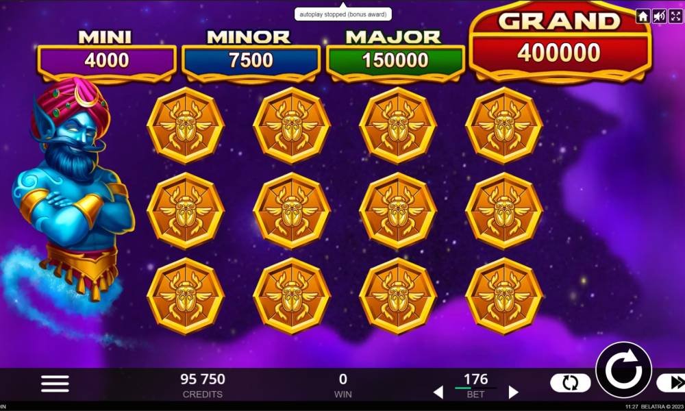 The Wild symbol when it falls can activate the genie's lamp, for which the player gets the chance to win one of the jackpots: