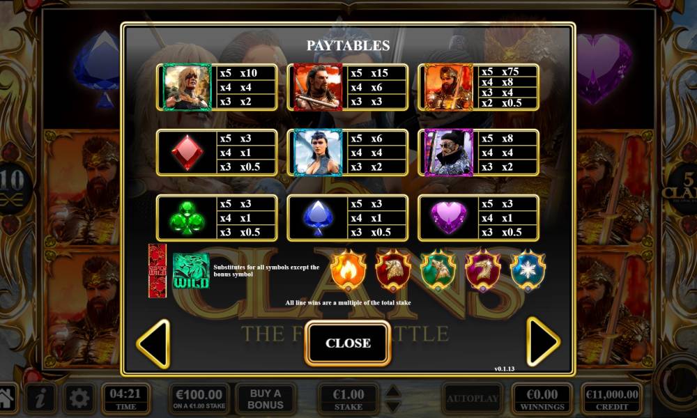 The 5 Clans slot machine from the Yggdrasil provider has a standard playing 5x3 playing field. Payouts are made on 10 lines.