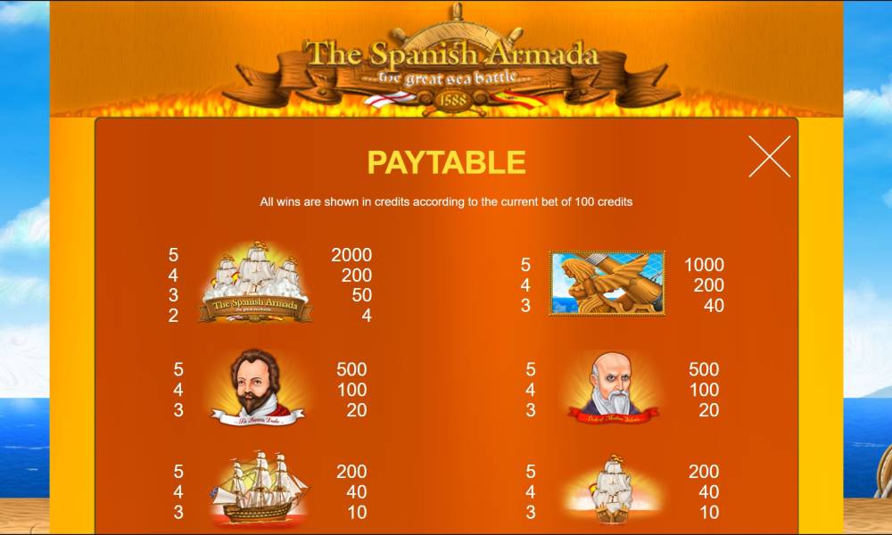The first thing I appreciated was the attempts to create a historically plausible slot. The reels spin heavy Spanish ships, skittish English ships, the unpretentious loot of the times and images of the two leaders of the battle. Images of Sir Francis Drake and his opponent Duke of Medina Sidonia are taken from old paintings. Players can also expect great free spins with Sticky Wilds, wins up to x4000 of the bet and a unique seven-day attraction. The slot is recommended for fans of excitement, history, naval battles and in general all players.