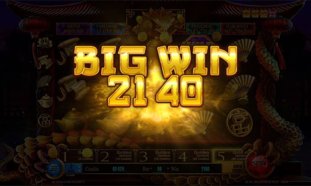 88 Dragons Bounty is a slot with a familiar set of rules, but its own interesting mechanics. It's recommended that you spend some time in the demo version to learn them. Testing will quickly put everything in its place and will help you move on to real bets without making any frustrating mistakes.