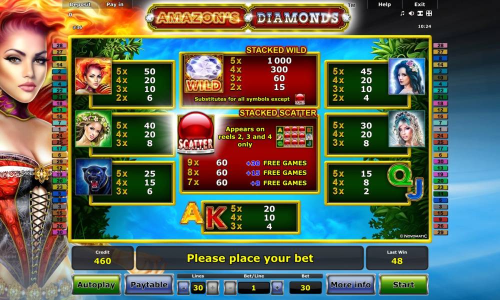 Novomatic presents Amazon's Diamonds slot, which will captivate the male portion of the Casinoz readership, who are passionate about the extraordinary beauty of South American women.
