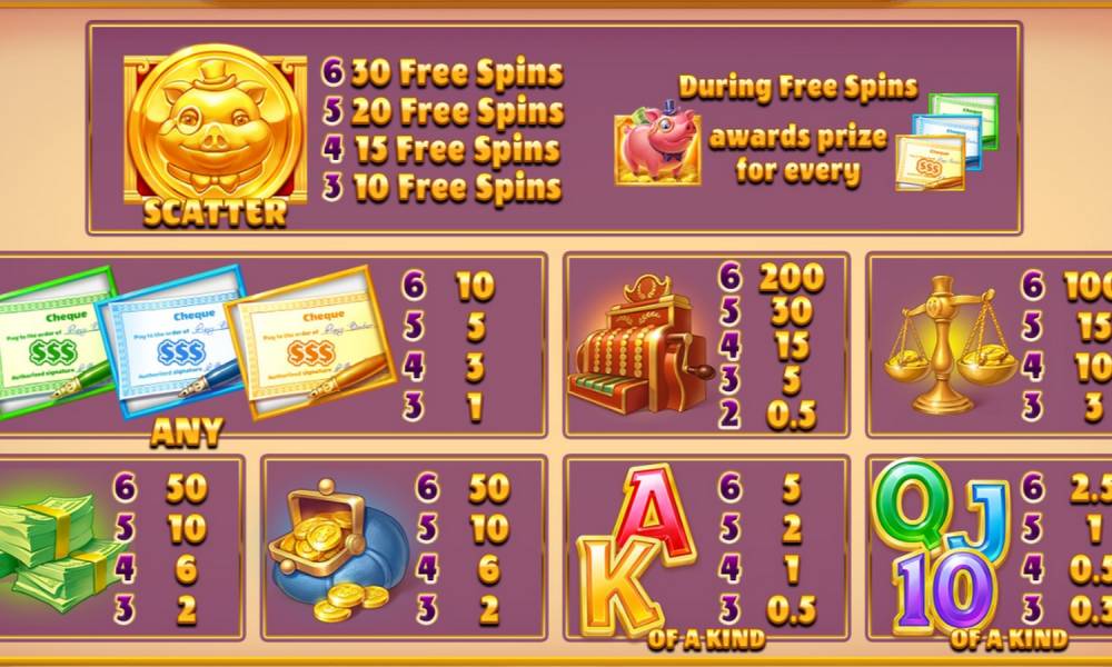 The larger the Cash Symbol, the higher the potential winnings in free spins.During free spins, the wild symbol pays out the values of all checks that fall with it on the field. If several pigs are shown, each of them will collect Cash Symbols and give a prize to the user.