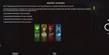 You can get to grips with the monsters and immerse yourself in the gameplay without the slightest risk by first playing the demo version of the slot. Playing in demo mode allows you to explore all the features of the Bloodthirst for free, including bonus features, as well as understand the symbols and rules. If you still want to compare the slot with others or look for something lighter and lighter, you can use the large collection of demo games on Casinoz.