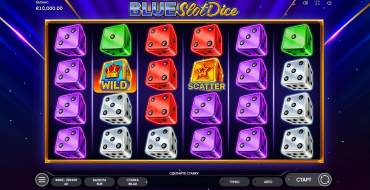 Blue Slot Dice is a slot with 6 reels in 4 rows and 40 fixed paylines. The bet size options are quite extensive, starting with a minimum of €0.40 and ending with a maximum of €100. Prize combinations of symbols are counted from the leftmost reel. The highest winnings can be obtained for the maximum number of Scatter symbols on the field. Scatter symbols and other symbols on the paylines are added together.
