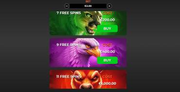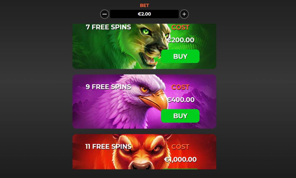 Buy Bonus. For x100, x200, x500 of the bet, the user can buy 7, 9 or 11 free spins. The round will be played under standard conditions.