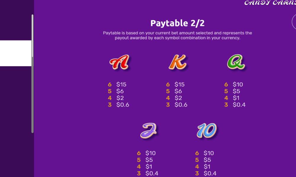 Demo version of the online slot Candy Carnival - is ideal way to get acquainted with the game without registration and deposit. You can free to test all features, explore bonuses and understand the mechanics. This is a great opportunity to try your hand without risking real money. There are plenty of demo games available on Casinoz, including this slot.