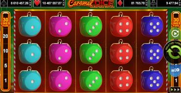On the five reels are located dice. There are a total of 2 senior, 4 middle and 3 junior symbols. Symbols from the first category are paid from two pieces, all others from three. Maximum can be made up chains of 5 signs. Lines for payouts are fixed 30. Fold prize combinations must be from the leftmost reel in a row. The range of bets in the slot Caramel Dice - Christmas Edition 0.3-100 euros. The maximum winnings - x1000 of the bet amount. But much more the user can get if the user will break the progressive jackpot.
