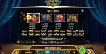 The Cash-a-Cabana online slot offers the player to choose a bet from a range from 0.05 to 100 cents. The maximum winnings are capped at x10000, but are accompanied by very high volatility. The game uses a total of 9 row symbols and 2 special ones. The combinations are built from left to right, from 3 identical symbols in a row (or using the Wild symbol). The pay table has pretty good coefficients, which are further increased by multipliers. Free spins expand the scope of the bonuses, adding new Multiplier values, which affects the size of the winnings.