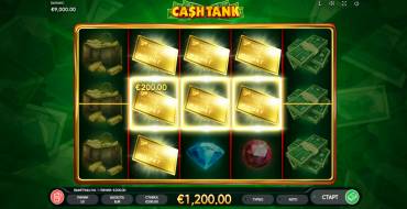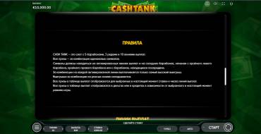 In the Cash Tank video slot the game is played on 5 reels in 3 rows with 10 paylines. Gamers choose the number of active lines and the bet size, which ranges from 0.01 to 100 coins per line. The maximum bet is 200 coins if all lines are activated. Winning combinations are made up of identical symbols located on the lines on neighboring reels. Accounting goes from left to right, and right to left, and even from the center reels. When 3 or more identical symbols fall out, a multiplier is applied to the bet, the size of which is more significant, the more similar symbols on the field. The maximum multiplication gives the appearance of 5 dollar signs - x100 to the bet!