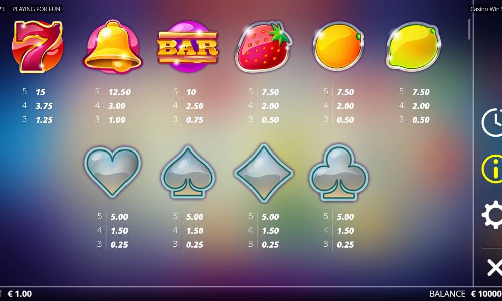 The maximum bet in the Casino Win Spin slot is €100