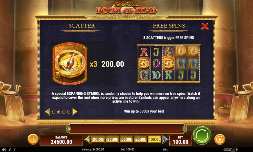 The details of the freespins rules are discussed in the video review of the Cat Wilde and the Doom of Dead on Casinoz.