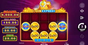The Coin Express slot machine features 4 types of jackpots. All of them are available only during the bonus mode. To get the three younger ones you only need to hit the corresponding symbol: