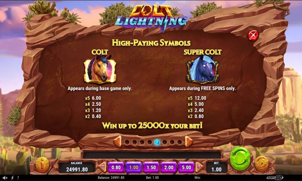 Unlike many games of the period, Colt Lightning has its own unique mechanics. The best way to familiarize yourself with them is to play demo. This way the player pursues several goals at once - to find out how interesting the slot will be, to study the principles of combinations, coefficients of the pay table, bonus systems and get acquainted with the interface.