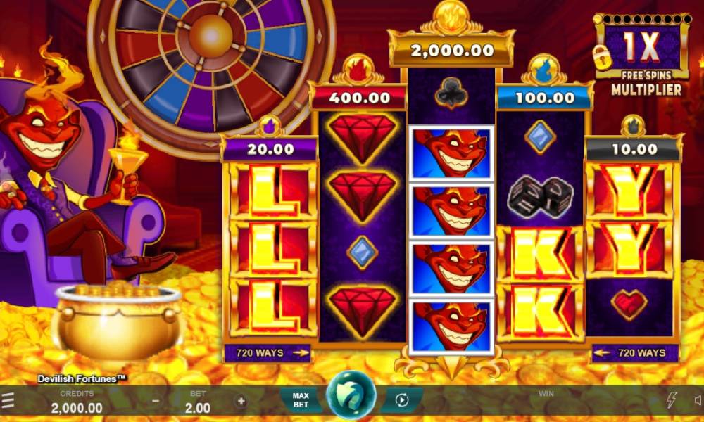 The maximum win in Devilish Fortunes exceeds the bet by a factor of 5,000.