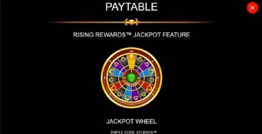 Mechanics Rising Rewards (by the name of one of the previous games of the same developer). The idea is to get prizes during the main game to then win more when spinning the bonus wheel and during free spins.