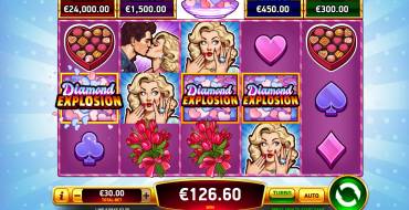 Wild. A symbol with a large number of hearts and the inscription Diamond Explosion. Will be part of any winning combination of simple symbols, if it is in the same payline.
