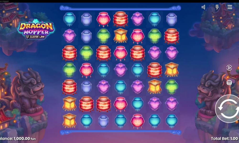 The Dragon Hopper online slot has an unusually large 7x7 playing field. For such a number of cells the usual lines would not be enough and the developers used a cluster system to make combinations. The main condition is the contact of symbols horizontally or vertically. The bet is chosen from the range of 0.1 - 100 euros. The slot has a total of 7 row, 2 special and a few auxiliary symbols. All of them are available both during free spins and regular spins. The maximum win is x10000 of the bet, which for volatility slightly above average is an excellent indicator.