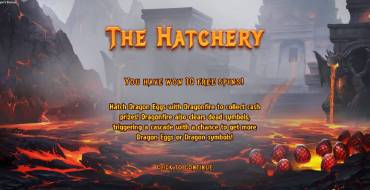 The Hatchery Bonus is activated upon 4 scatter symbols. This bonus game drops eggs with cash prizes, which are multiplied if touched by a dragon.
