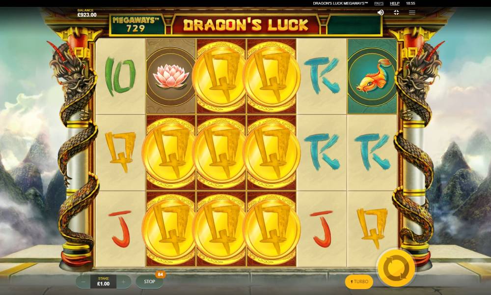 The golden dragon is the main game icon in Dragon's Luck Megaways slot. It does not represent wealth and gold, but was a symbol of Chinese emperors. However, in the game, the dragon is depicted on the coins, under which there are groups of game icons.