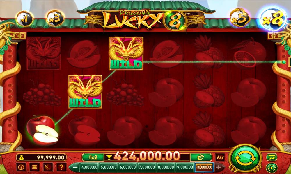 There is no 100% winning strategy in the Dragons Lucky 8 slot - each spin is unique and depends on luck. Players can use different betting systems to better manage their budget and risk. Remember that adjusting the volatility level allows you to customize the game to your own style.