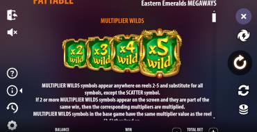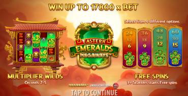 Play the Eastern Emeralds MEGAWAYS slot simply and with fun! The reels are located inside a traditional Asian pagoda, with the control panel and help information on the right and a button to buy a bonus on the left. Before you start playing, you should: