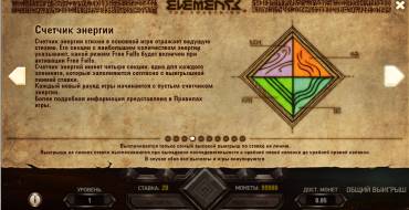 The Avalanche feature also ends after four successive avalanches. Their current number is displayed in the Avalanche Meter above the control panel. After each function is triggered, one stone lights up on it. In addition, the slot Elements: The Awakening has an "energy meter" (Energy Meter), the role of which is played by the button to start a new spin. It displays the colors of the elements that triggered the last avalanche.