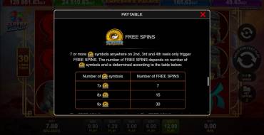 Free spins are triggered by the yin-yang symbol falling on the three center reels. For 7, 8 and 9 symbols the player can get 7, 15 and 30 additional spins respectively. It is impossible to restart the round again, as Scatter symbols will not appear on the reels at this time.
