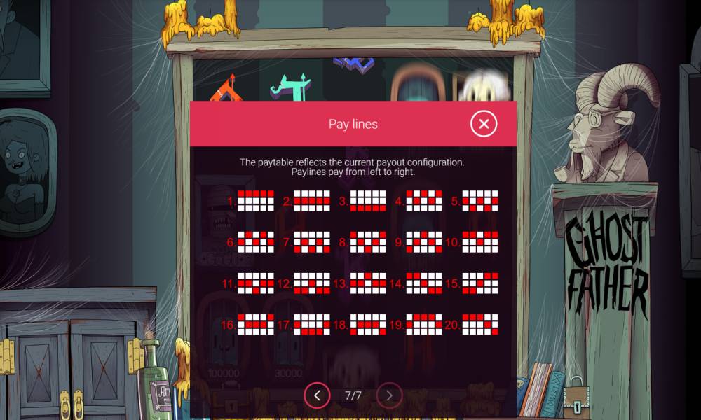 The Ghost Father is a video slot from Peter and Sons With 5 reels, 3 rows and 20 fixed win lines. Winning combinations are formed from the left from left to right, starting with the leftmost reel. This is the classic approach to form winning sequences. The range of bets - from 10 to 10,000 coins per spin. There is no risk game in the game, but it is compensated by powerful bonuses. The maximum winnings reach 10,000x the bet.