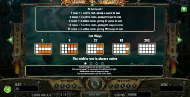 In addition, in Ghost Pirates you can choose the number of active lines, from 3 to 243.