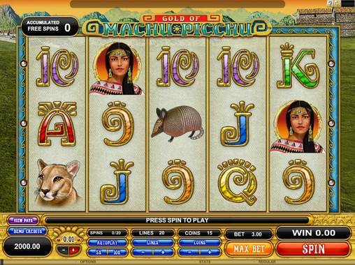 Gold of Machu Picchu is a free online slot machine with five reels and twenty pay lines. It is provided with the special symbols, a bonus round, free spins and lots of other exciting gaming options. The gambling feature, which could double up a payoff, is not provided by the rules.