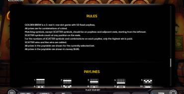 A slot like Golden Brew from Endorphina is a pleasure to play. As usual, in the center of the screen are the reels, below them - the control panel and statistics, the information block is in the upper right corner. Before playing, be sure to perform a few actions: