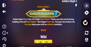 The Golden Glyph 3 video slot has 7 reels that spin in cluster order, creating multiple paylines. On the principle of "falling reels", all symbols that make up a winning combination disappear, making room for new ones that fall from above. Winnings are paid out for contiguously connected groups of symbols. The Bet size ranges from €0.20 to €100. If 5 or more identical symbols appear on the reels, the bet is increased by a multiplier, the size of which depends on the number and type of symbols. The maximum multiplication is given by the appearance of 15 or more symbols of Horus - x100 to the bet.