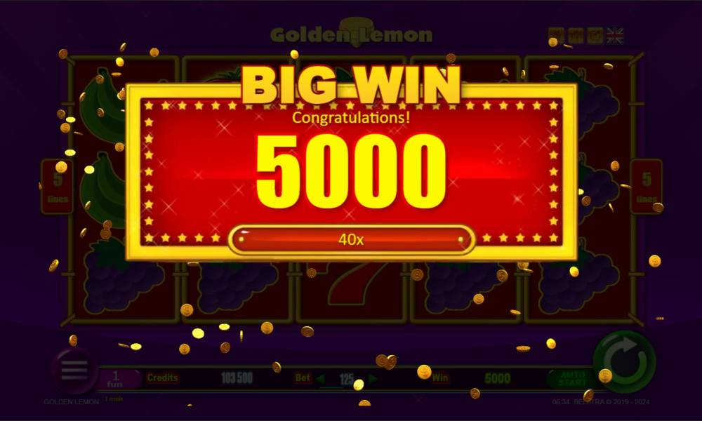 In the Golden Lemon, the playing field consists of 5 reels with 5 fixed paylines. Combinations are considered winning from 3 symbols in a row in one direction. Counting symbols is carried out from left to right. Free spins are not realized in the game, as well as other serious bonuses. Here rule the ball symbols and their combinations. The online slot can be connected to the jackpot draw from the provider. The bet has a range from 0.1 to 50 euros, with the player choosing among the ready-made values. Often casinos change this parameter to one side or the other. A total of 7 ordinary and 1 special symbol is played. The volatility of the slot is medium, and the maximum winnings are limited to x1000 of the bet.