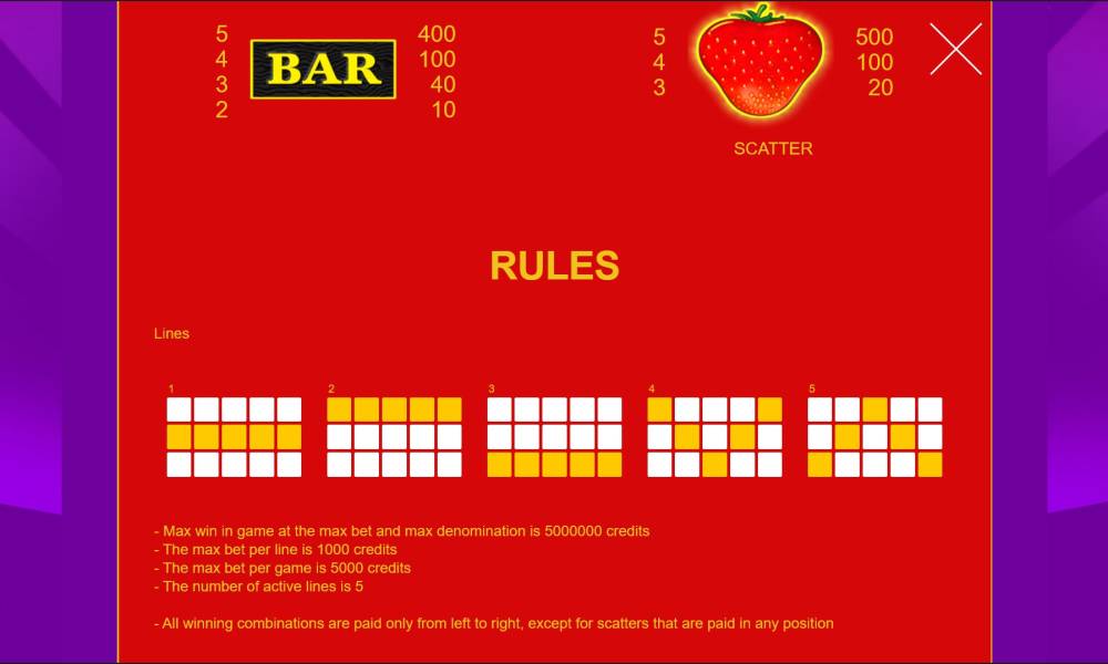 Five lemons placed on one of the lines will bring the player the maximum allowable winnings.