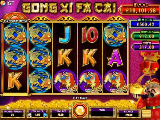 Current amounts of the progressive jackpots are displayed at the right of the reels.