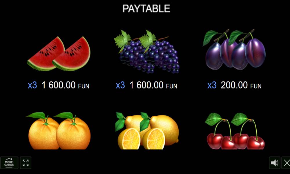 In the menu users will find the rules of the machine, tips on the game, payout table. There you can also make basic settings for music and sounds.