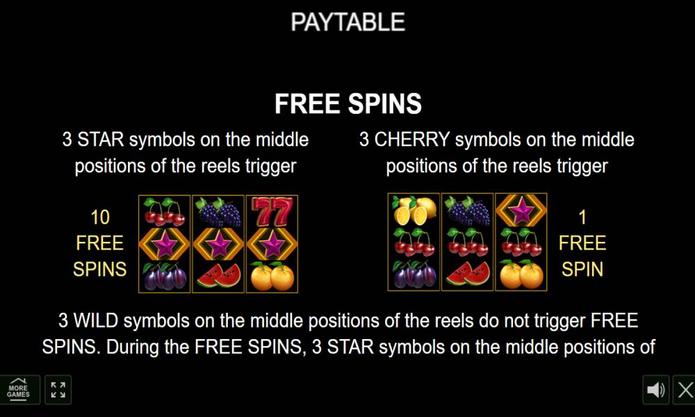 Stop three stars on the center positions of all three reels. 10 free spins will be given.