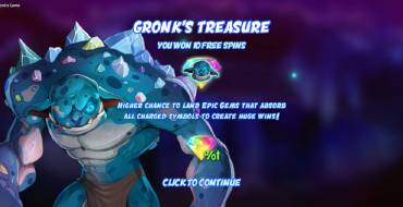 The Gronk's Treasure bonus round, in which the player is awarded 10 free spins, is activated by three scatter symbols with the image of Gronk's head. In this case, the probability of falling out Epic Gems increases significantly. If during the free spins again falls a combination of three scatters, the player is awarded additional freespins, which allows you to extend the round and increase the total winnings.