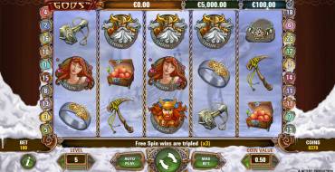 Free spins activated by three or more scatter symbols multiply the winnings in Hall of Gods slot by x3.