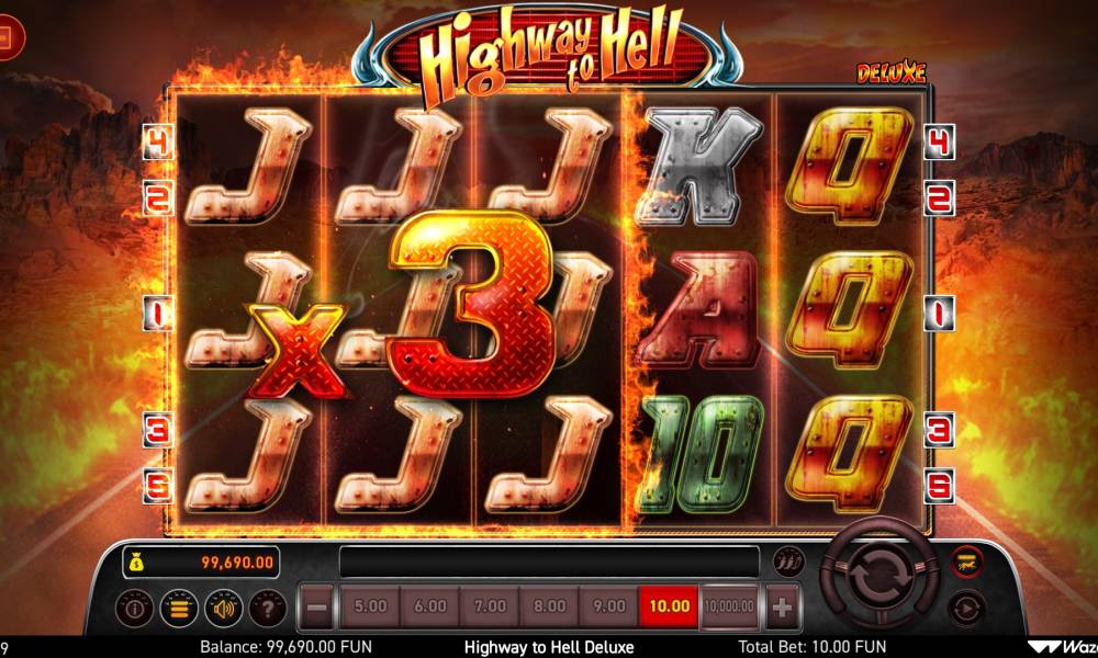 In the Highway to Hell Deluxe online slot, the playing field consists of 5 reels and 3 rows of symbols. There are a total of 5 win lines in the slot. This is the area where there is an opportunity to win. To win, you need to collect identical symbols on one of these lines. Everything counts exclusively from the left reel.