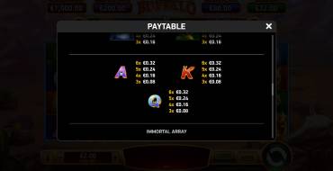 Hit frequency is slightly above average. When the Immortal Array feature is triggered (and it happens a lot), there are fewer free cells for the basic symbols, so the chances of catching regular paylines are reduced.