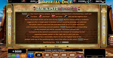 Provider Amusnet has decided to release another dice machine called Imperial Dice. It has a modest design with calm colors. It doesn't have the same sense of drive and excitement as the bright slots. But it is not worth it because of the appearance to give up the rewards. The machine has technical characteristics that allow you to win gradually. And if luck is on the side of the user, he can snap a progressive jackpot, tens of thousands of times higher than his bet.