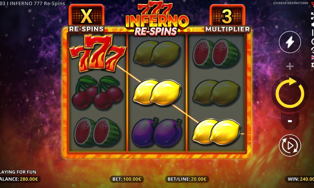 RTP for Inferno 777 Re-Spins is around 96.63%, which is a good figure for online slots.